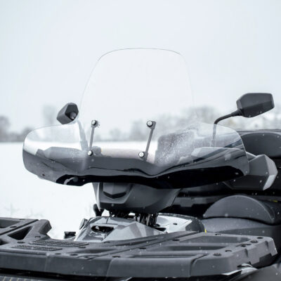 Kompletní vyhřívaná kabina pro CAN-AM DEFENDER/TRAXTER XU(2020-XX), čiré polykarbonátové dveře, uzamykatelné, o 180° otevíratelné, s posuvnými okny, přední okno z bezpečnostního skla se stěračem a ostřikovačem, zadní čelo z čirého tvrzeného UV-odolného polykarbonátu, teplovodní topení