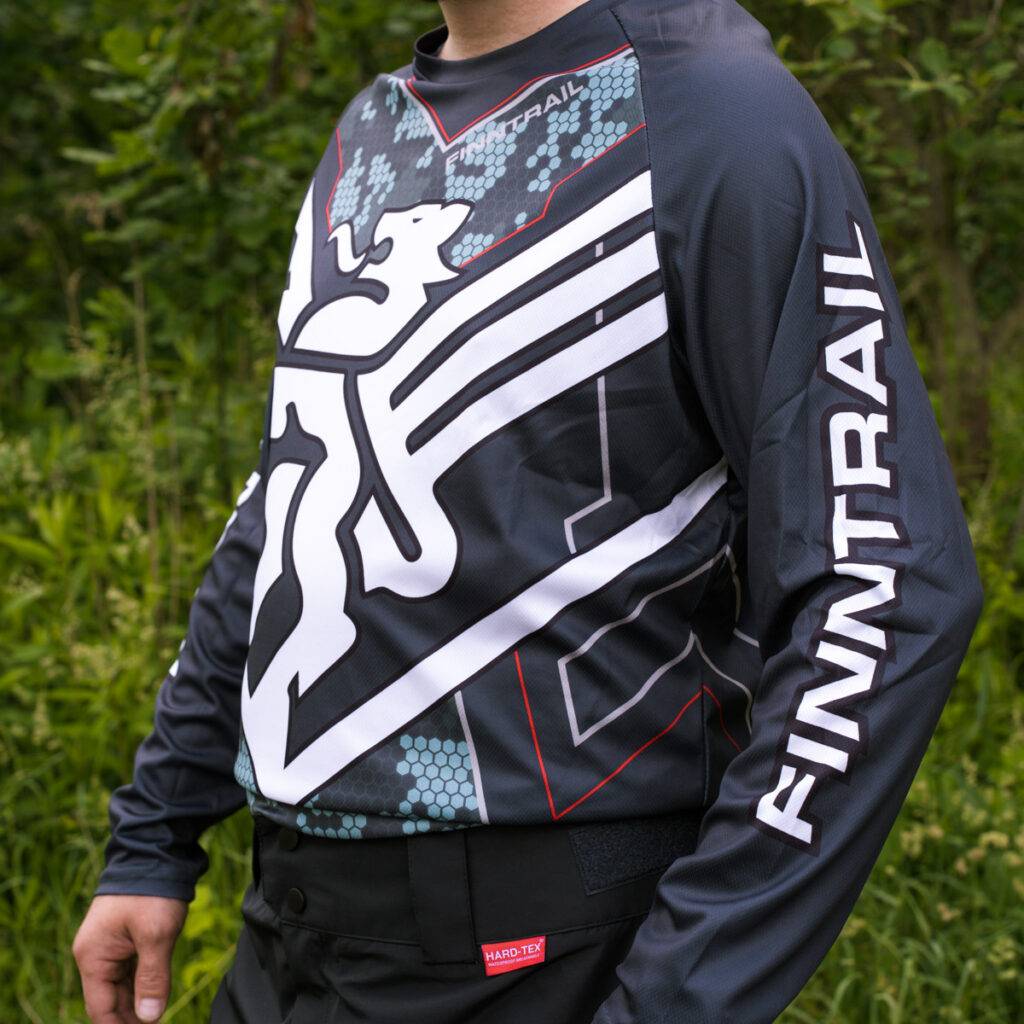 ATV dres Finntrail, odolný elastický materiál absorbující vlhkost, volný střih, dlouhý rukáv, kulatý výstřih