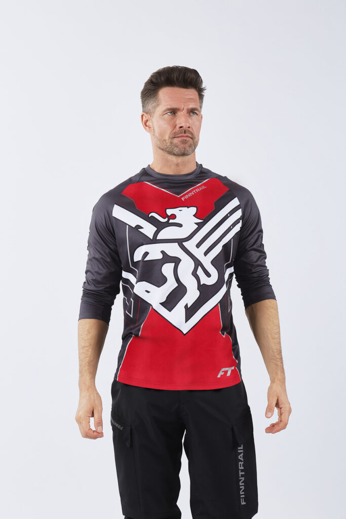 Nový dres Finntrail – odolný elastický materiál s vysokou schopností absorbovat vlhkost, pohodlný volný střih, dlouhý rukáv a kulatý výstřih