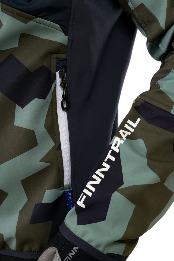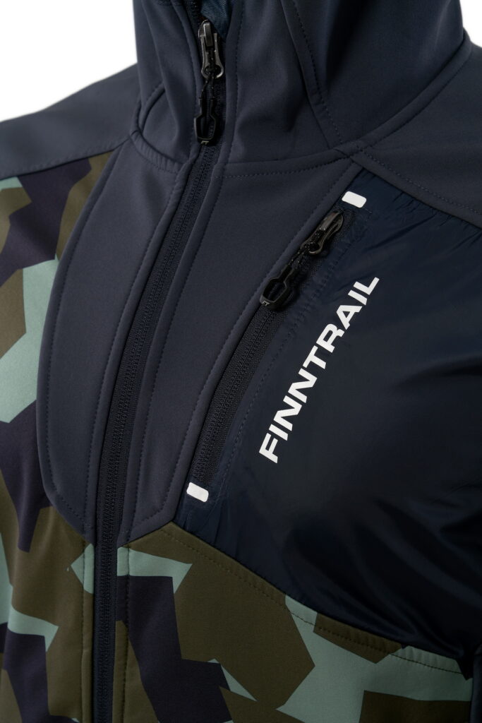 Větruvzdorná vodoodpudivá softshellová bunda do mírného počasí, 3vrstvý softshell, fleecová podšívka, štíhlý slim střih, elastické obruby pro pohodlné nošení a ochranu před větrem, chladem a deštěm, vnitřní větrná ochrana za středovým zipem, náprsní kapsa na zip a dvě boční kapsy, originální design FINNTRAIL