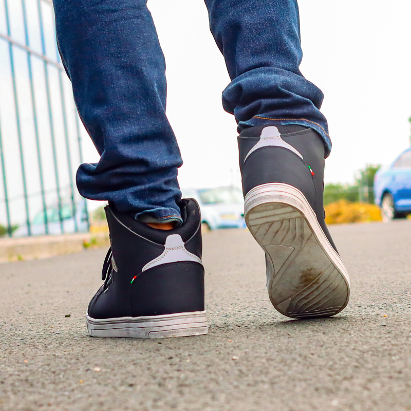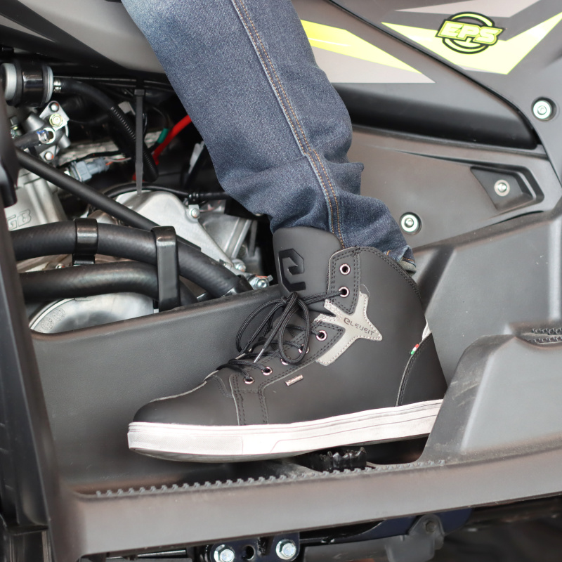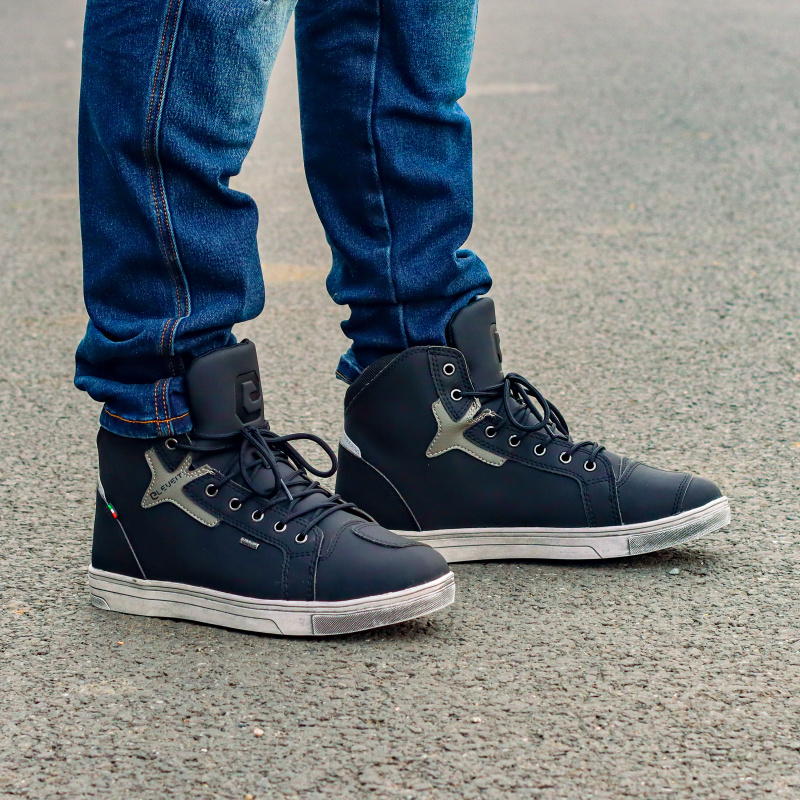 Voděodolné kotníkové boty na motorku, cestování a do města, maximální pohodlí, svrchní materiál: pružné a lehké mikrovlákno s vodoodpudivou úpravou, výztuhy na kotníku, patě a špičce, prodyšná vnitřní membrána E-dry, šněrování na tkaničky, gumová podrážka, CE certifikace