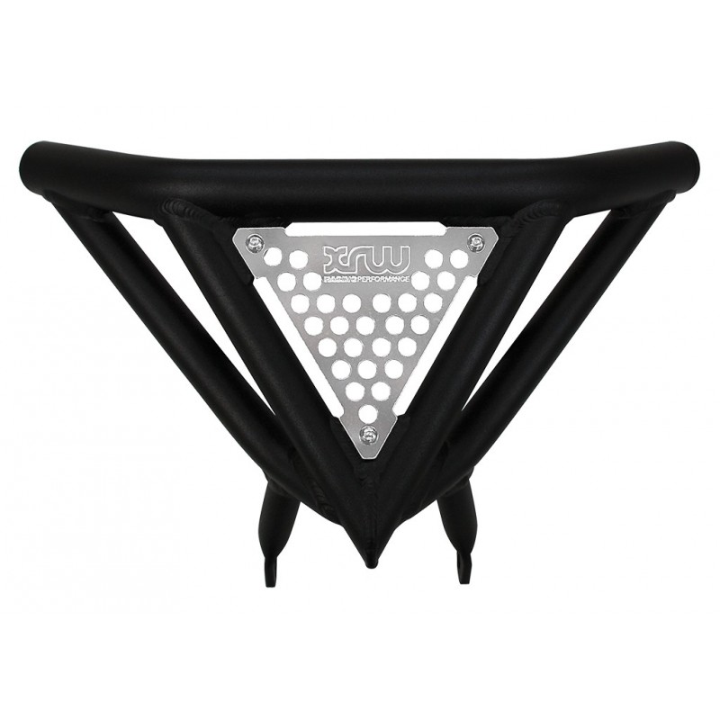 Robustní závodní přední nárazník pro sportovní čtyřkolky, z trubek O 35×2.5 a O 27×3 mm z tvrzené hliníkové slitiny 6060-T5, povrchová úprava černá, snadná montáž, ručně vyrobeno v Evropě
