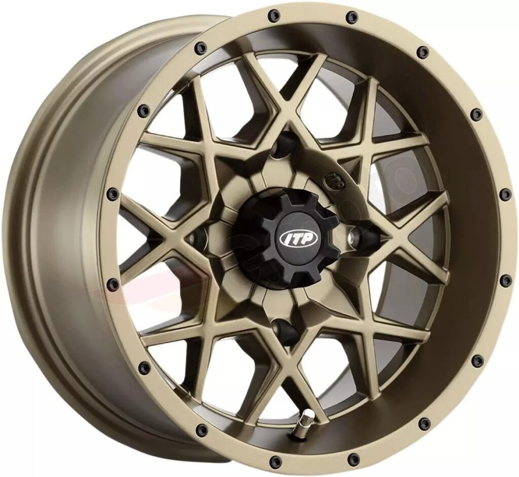 Skvěle vypadající extrémně odolné duralové disky pro užitkové čtyřkolky, atraktivní konstrukce s osmi překříženými paprsky ve tvaru X, vnitřní zesílení ráfku Rock Armor, bronzová povrchová úprava