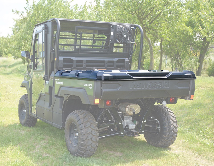 Uzamykatelný kryt korby pro Kawasaki Mule FX/DX chrání náklad před povětrnostními vlivy a znečištěním. Plynové vzpěry zajišťují snadnější manipulaci.