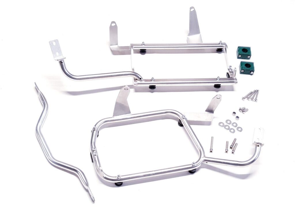 LS2 držáky kufrů na motocykl BMW R1200GS vyrobené z kvalitní oceli stříbné. Pro boční boxy LS2 Side CASE Black 38L + PIPE CASE BLACK 32L