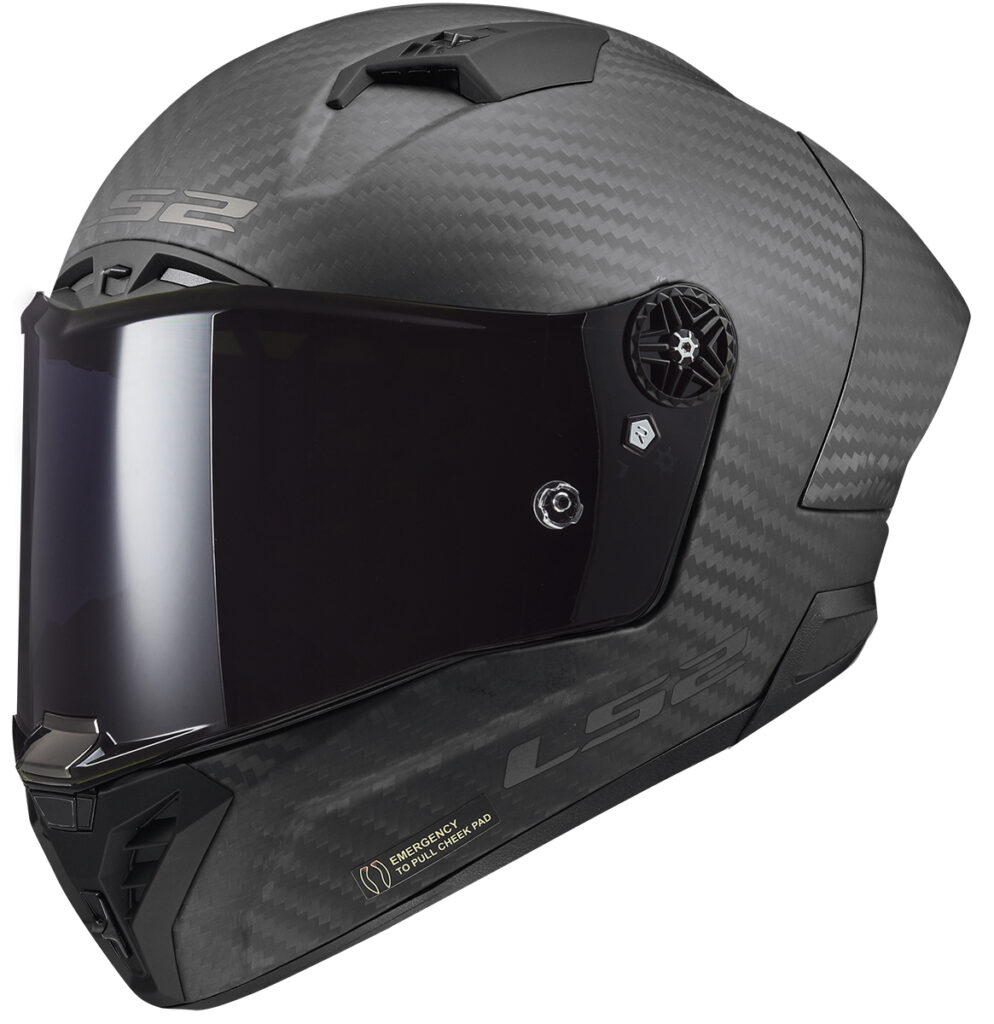 Karbonová závodní a sportovní helma s aerodynamickým spoilerem, odolná skořepina z karbon-aramidových vláken, velké zorné pole, plexi Racing s úpravami Anti-fog / Anti-scratch / Anti-UV, nosní a bradový spoiler, antimikrobiální interiér s obsahem stříbrného vlákna, zapínání dvojitými D-kroužky, 1400g, folie PINLOCK MAX Vision ZDARMA