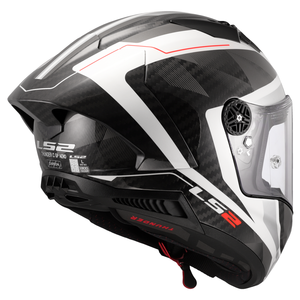Špičková karbonová helma pro sportovní motocykly, skořepina z 6K karbonu vyztuženého aramidem, plexi v ceně (čiré), kovový aretační mechanismus plexi, rychlé vyjímání lícnic, vyjímatelný bradový spoiler, antimikrobiální vyjímatelný a pratelný interiér, zapínání dvojitými D-kroužky, hmotnost jen 1400g