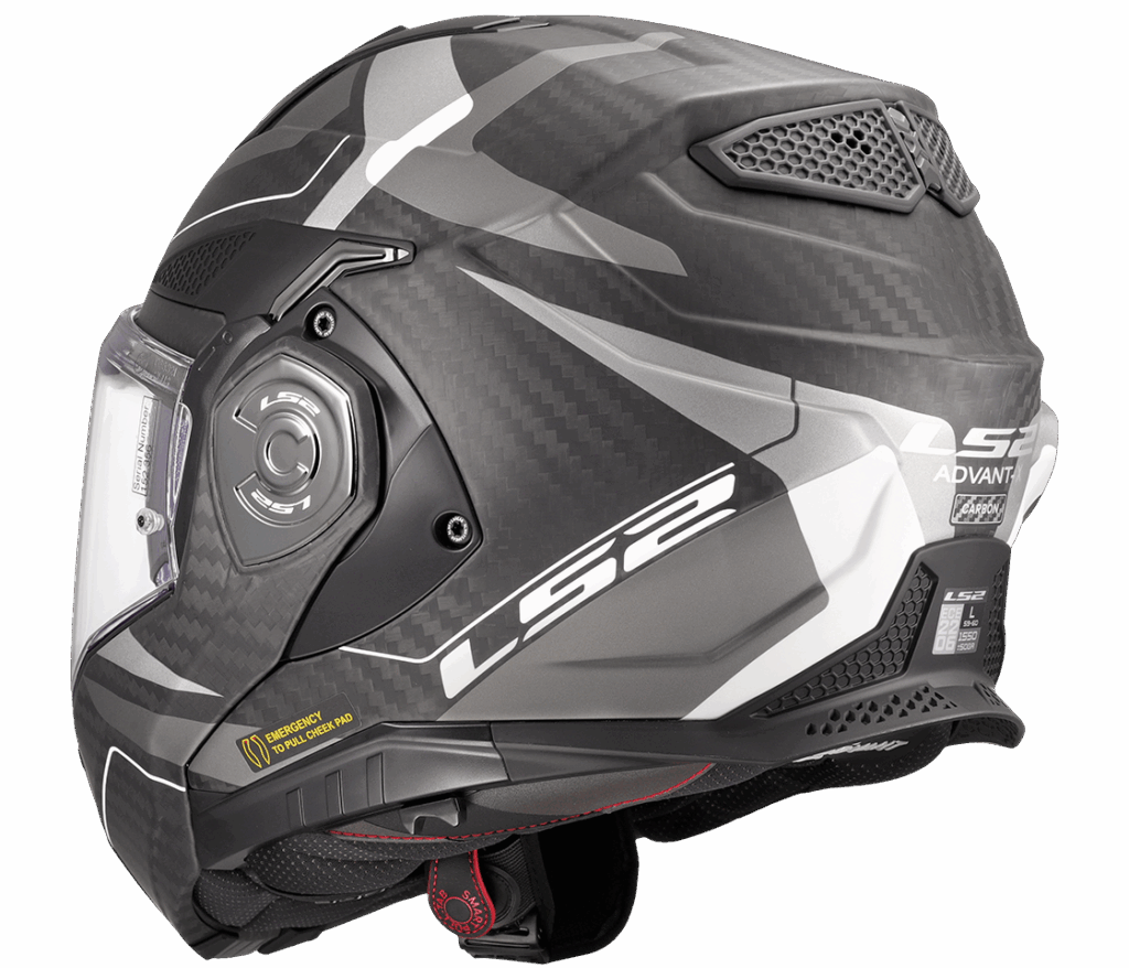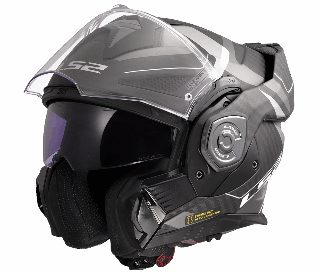 Špičková karbonová cestovní překlápěcí helma nejvyšší třídy, integrovaná sluneční clona, vylepšený mechanismus překlápění o 180 stupňů, snadno vyjímatelné plexi s úpravou proti poškrábání, větrání s uzavíratelnými vstupy, příjemný vyjímatelný a pratelný antialergický interiér X-Static s obsahem stříbra, zapínání rychlopřezkou, rychlé vyjímání lícnic, fólie Pinlock 70 Max Vision v ceně, 1550g