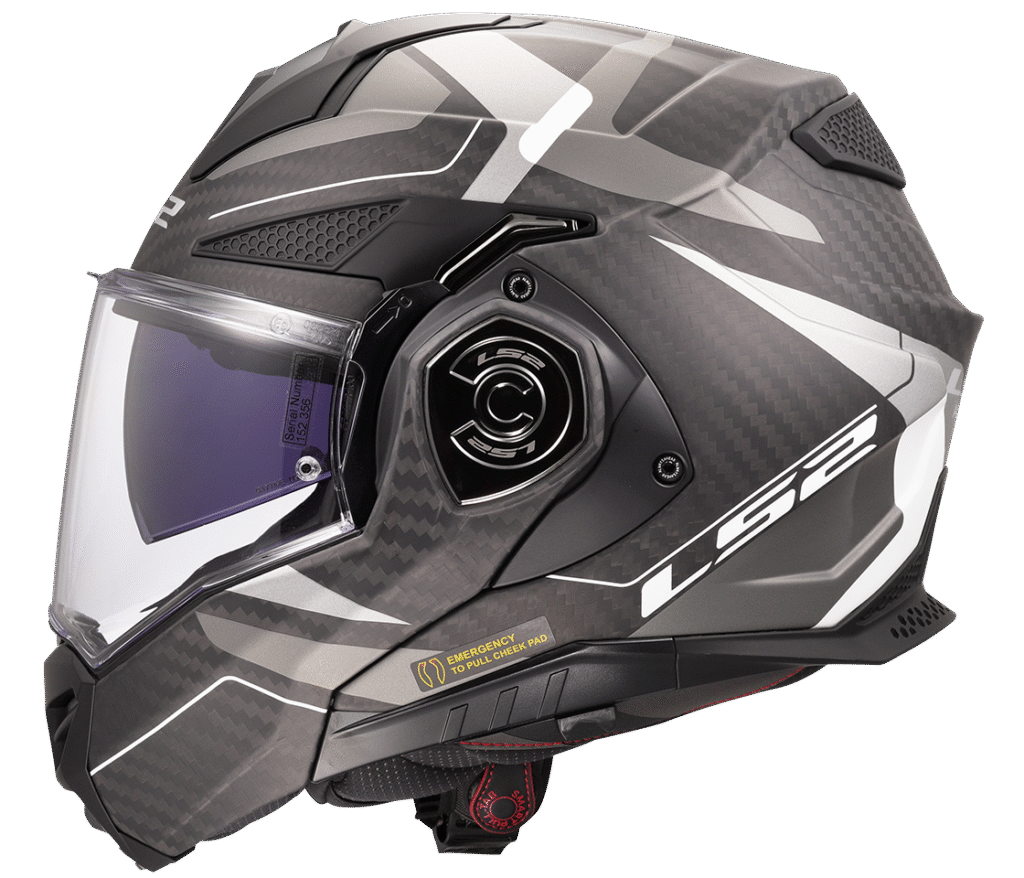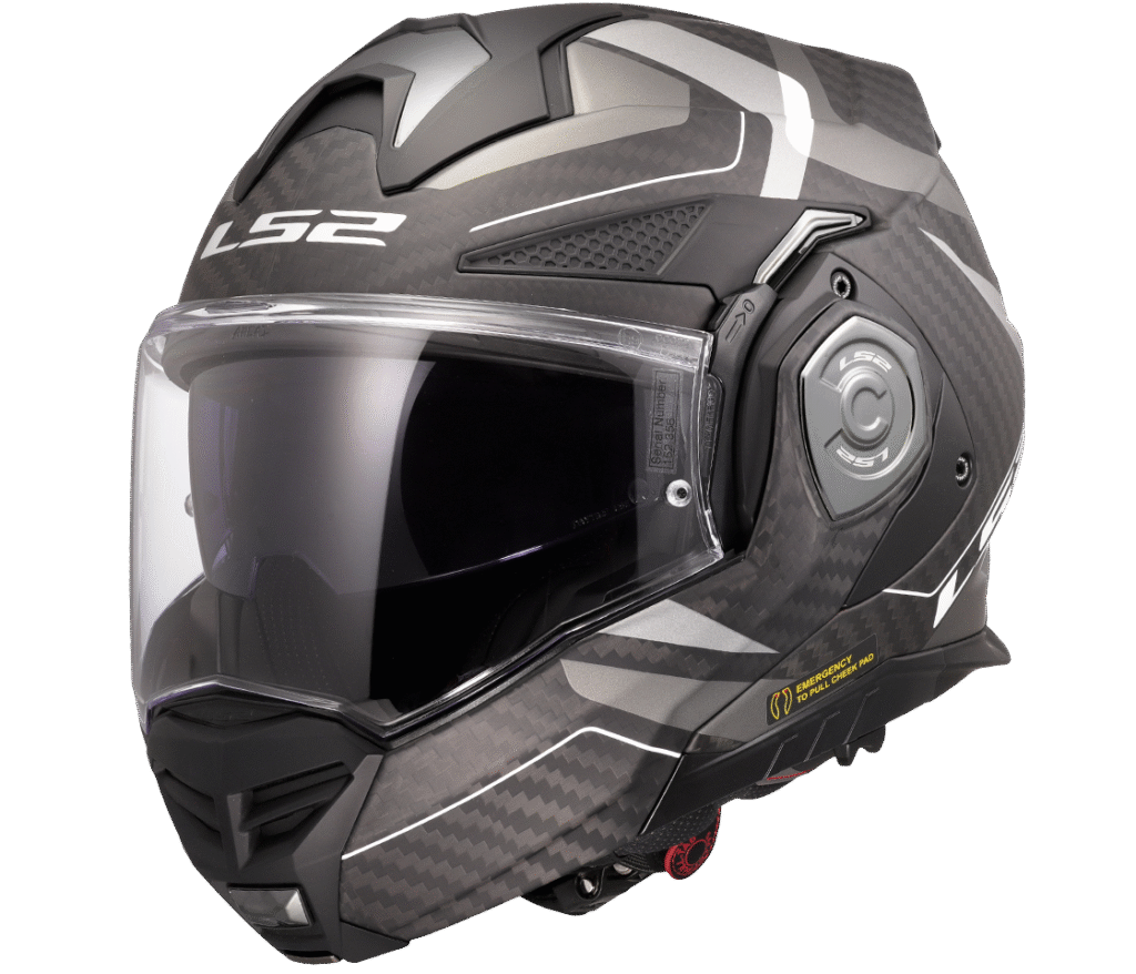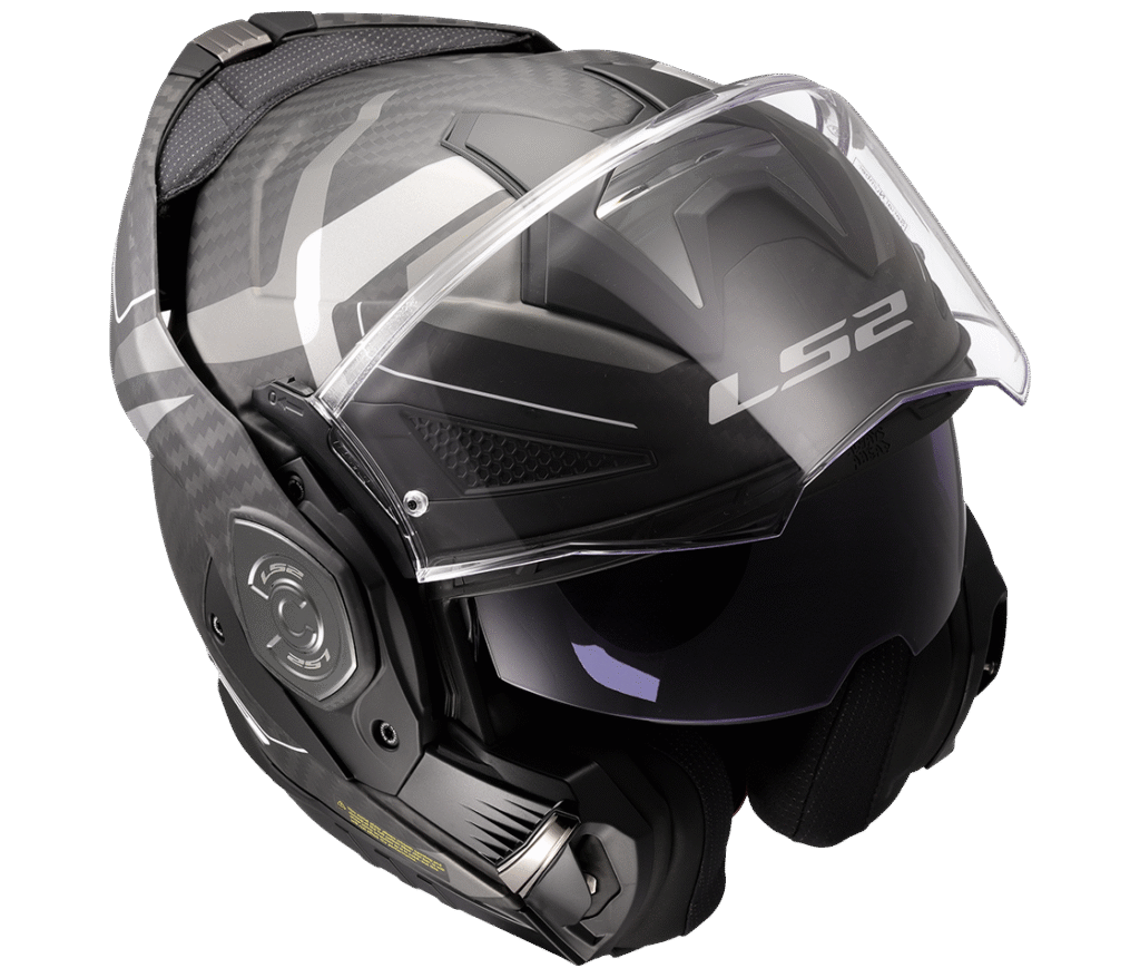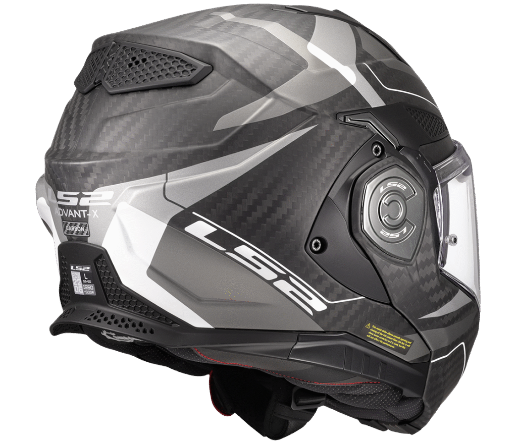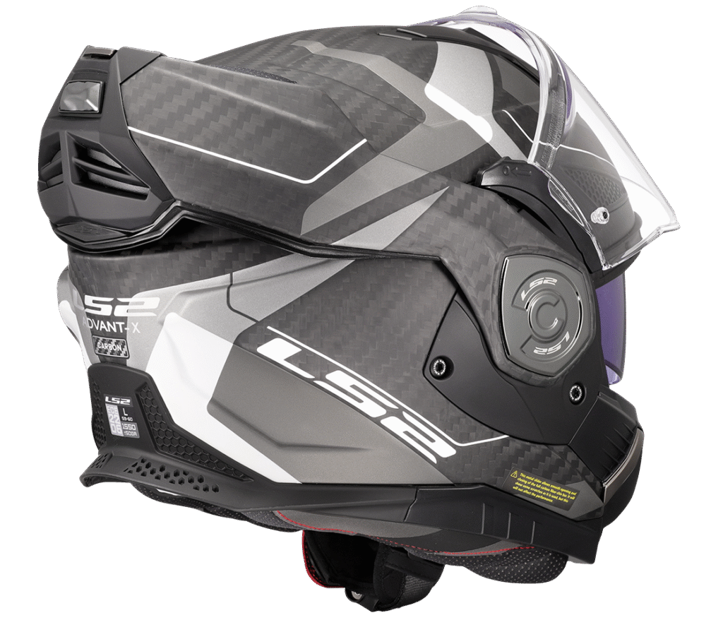 Špičková karbonová cestovní překlápěcí helma nejvyšší třídy, integrovaná sluneční clona, vylepšený mechanismus překlápění o 180 stupňů, snadno vyjímatelné plexi s úpravou proti poškrábání, větrání s uzavíratelnými vstupy, příjemný vyjímatelný a pratelný antialergický interiér X-Static s obsahem stříbra, zapínání rychlopřezkou, rychlé vyjímání lícnic, fólie Pinlock 70 Max Vision v ceně, 1550g