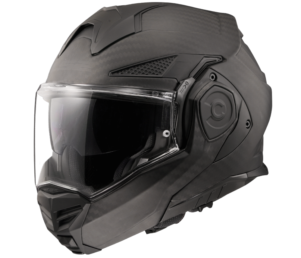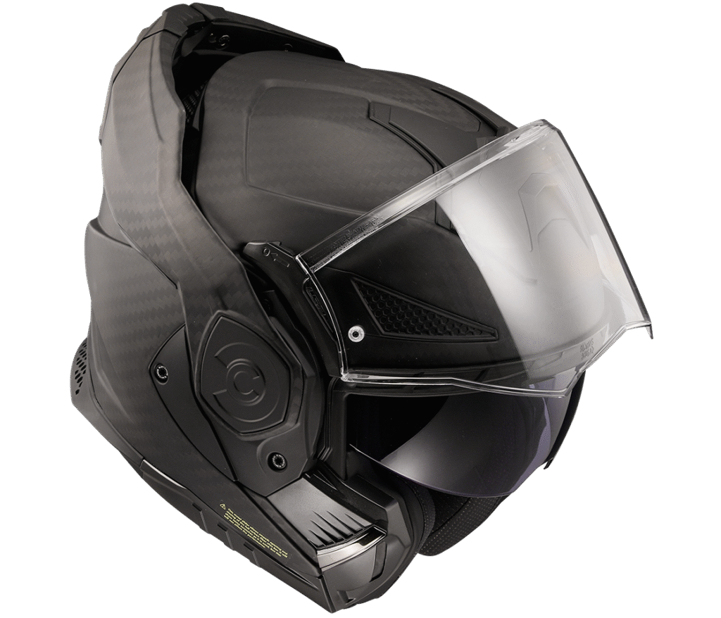 Špičková karbonová cestovní překlápěcí helma nejvyšší třídy, integrovaná sluneční clona, vylepšený mechanismus překlápění o 180 stupňů, snadno vyjímatelné plexi s úpravou proti poškrábání, větrání s uzavíratelnými vstupy, příjemný vyjímatelný a pratelný antialergický interiér X-Static s obsahem stříbra, zapínání rychlopřezkou, rychlé vyjímání lícnic, fólie Pinlock 70 Max Vision v ceně, 1550g
