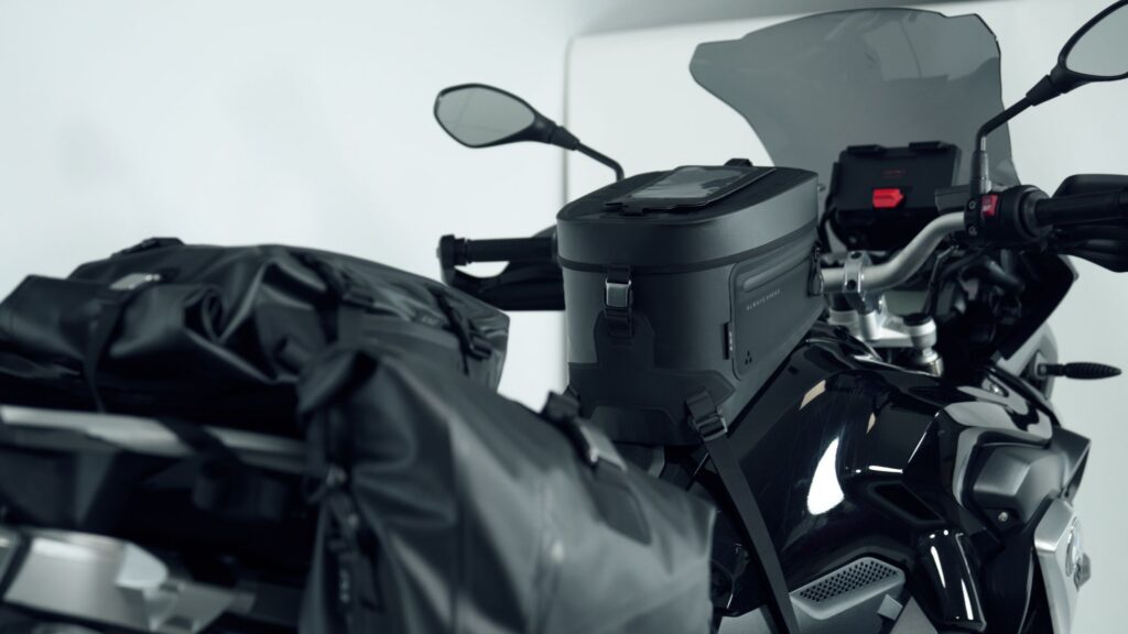 Plně vodotěsný (IPX5) tank vak o objemu 15 litrů s pevnou konstrukcí. Vyroben z Tarpaulinu 500D se svařovanými švy, disponuje odnímatelným pouzdrem na telefon, nastavitelným ramenním popruhem a rychloupínacím systémem pro snadné tankování.