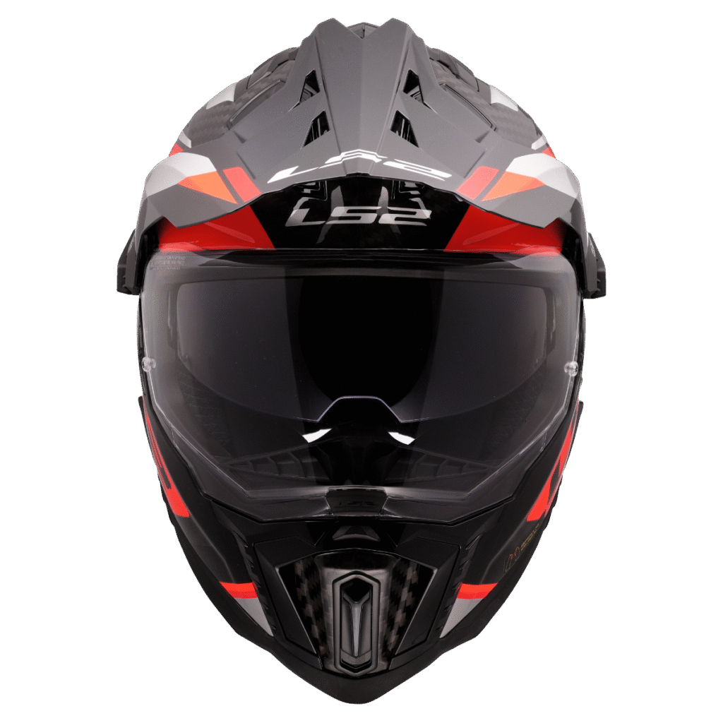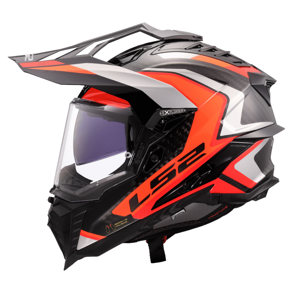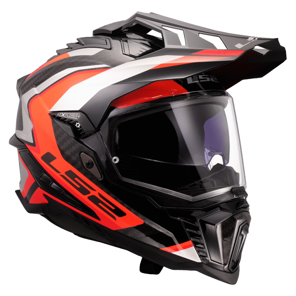 Špičková karbonová enduro helma LS2, integrovaná sluneční clona, čiré opticky přesné Anti-UV plexi s úpravou proti poškrábání, účinné větrání, komfortní antibakteriální antialergický kompletně vyjímatelný a pratelný interiér, rychlé vyjímání lícnic, zapínání dvojitými D-kroužky, 1380g