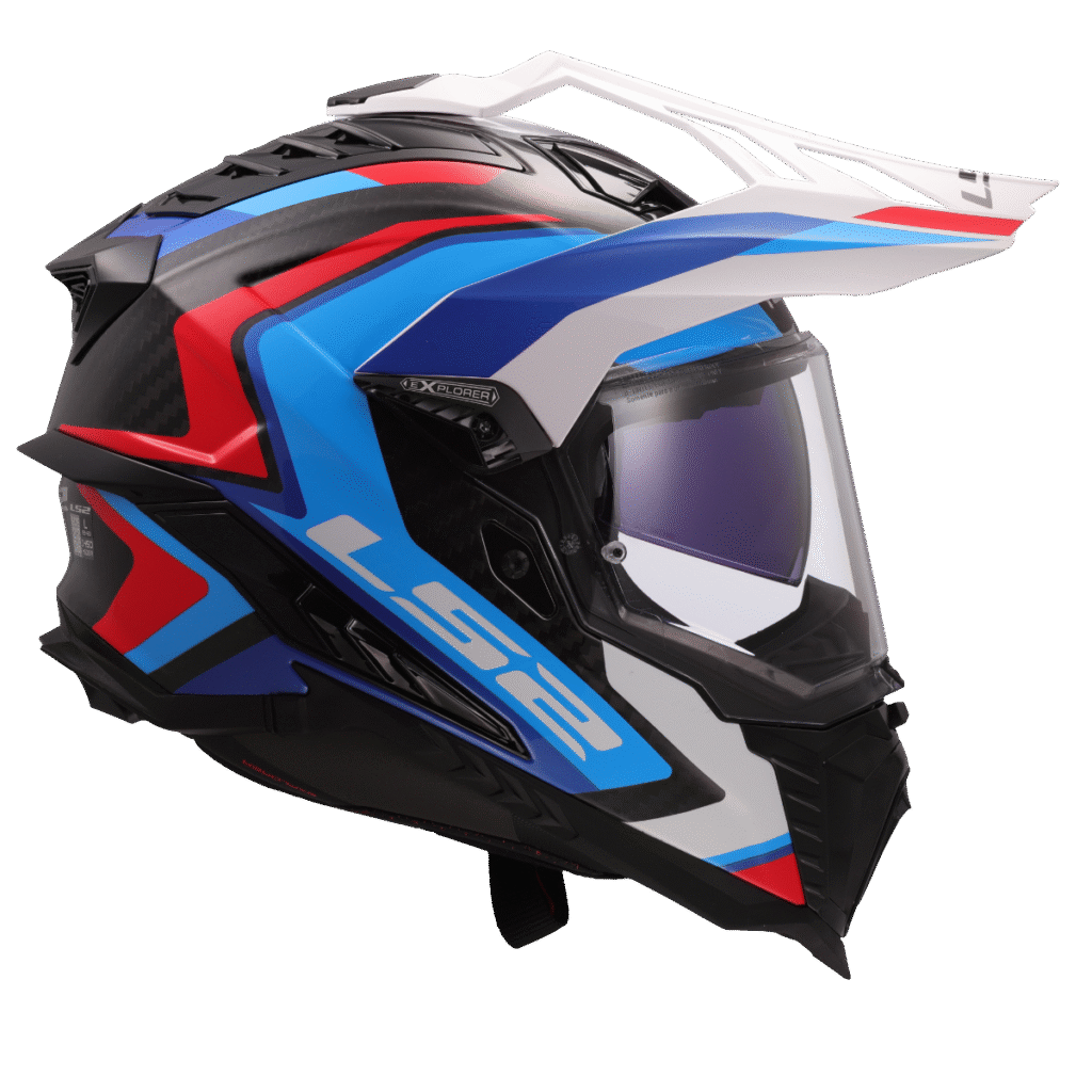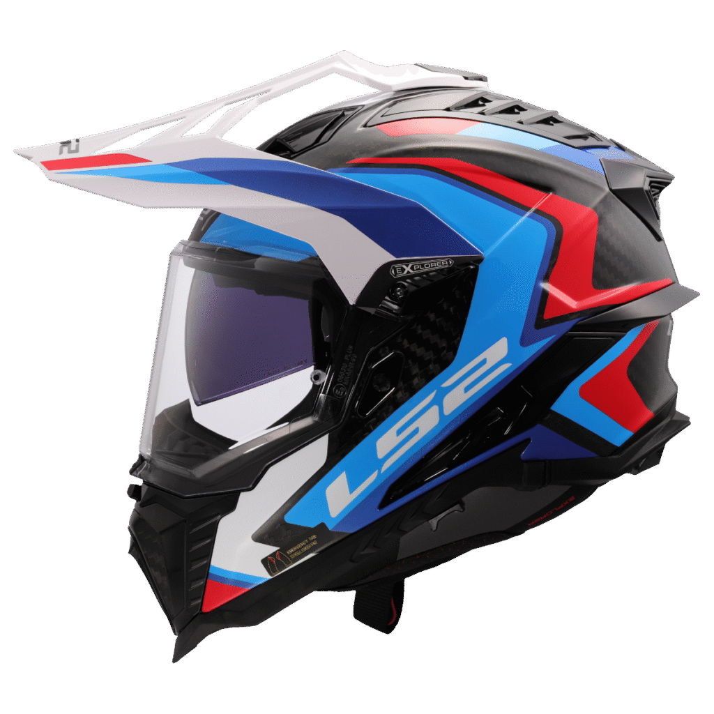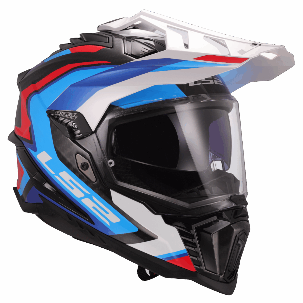 Špičková karbonová enduro helma LS2, integrovaná sluneční clona, čiré opticky přesné Anti-UV plexi s úpravou proti poškrábání, účinné větrání, komfortní antibakteriální antialergický kompletně vyjímatelný a pratelný interiér, rychlé vyjímání lícnic, zapínání dvojitými D-kroužky, 1380g
