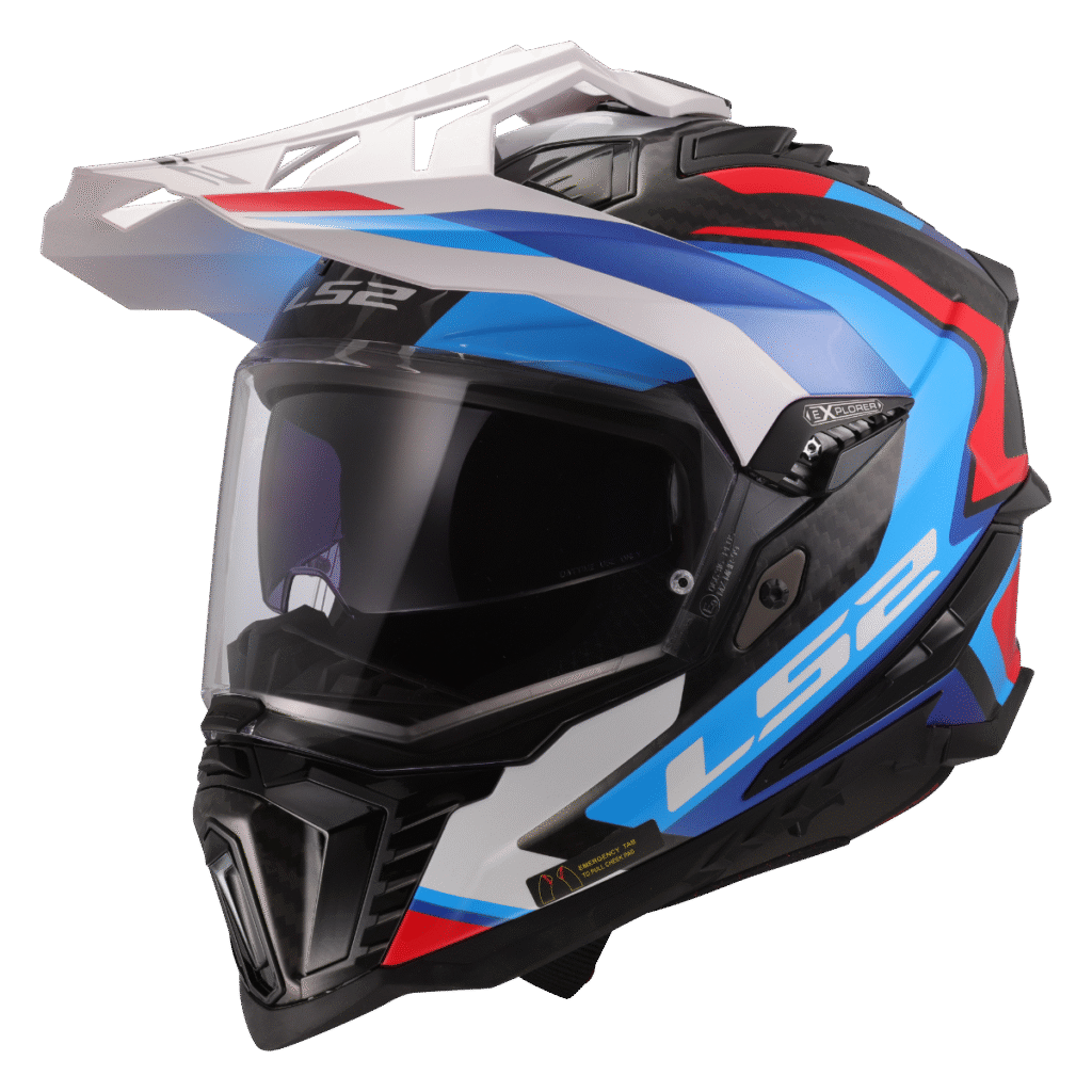 Špičková karbonová enduro helma LS2, integrovaná sluneční clona, čiré opticky přesné Anti-UV plexi s úpravou proti poškrábání, účinné větrání, komfortní antibakteriální antialergický kompletně vyjímatelný a pratelný interiér, rychlé vyjímání lícnic, zapínání dvojitými D-kroužky, 1380g