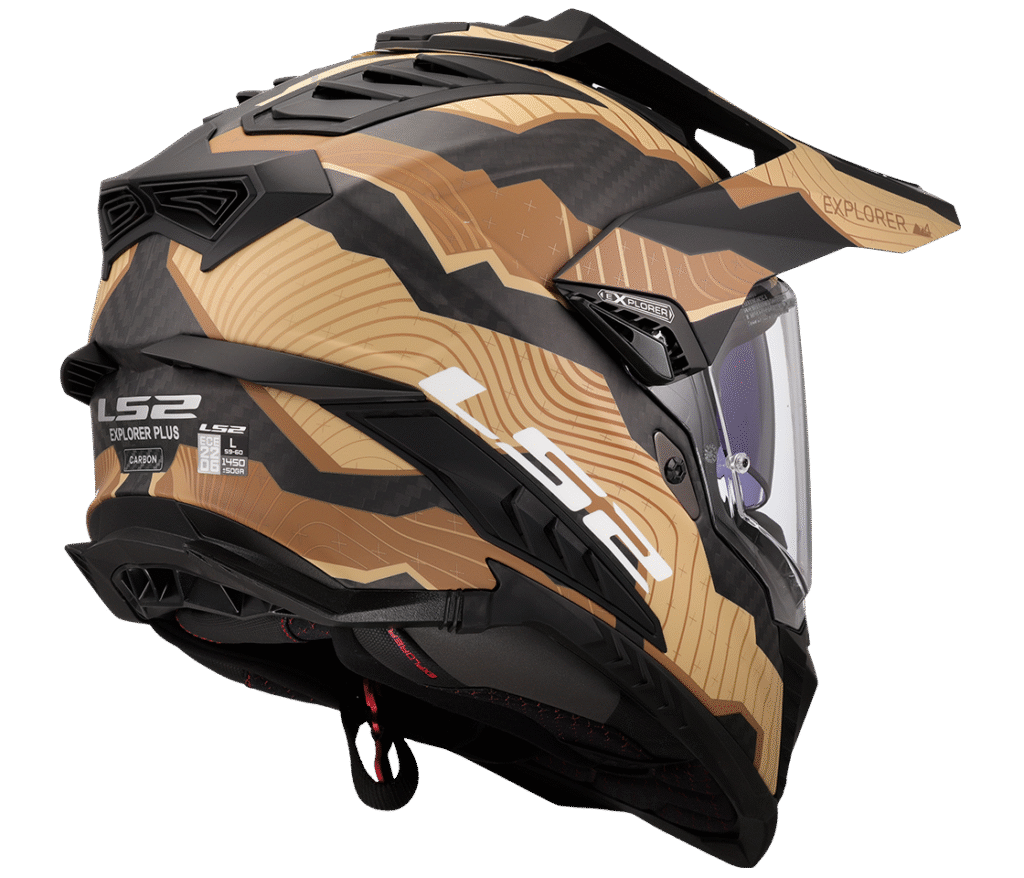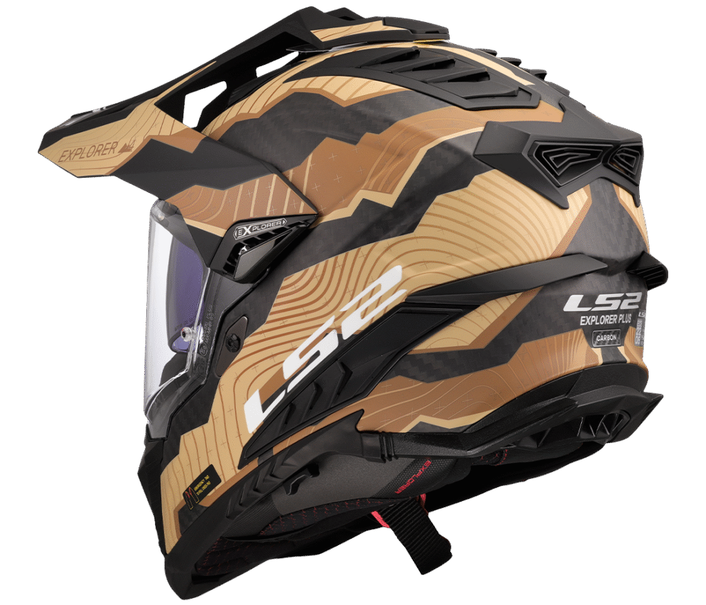 Špičková karbonová enduro helma LS2, integrovaná sluneční clona, čiré opticky přesné Anti-UV plexi s úpravou proti poškrábání, účinné větrání, komfortní antibakteriální antialergický kompletně vyjímatelný a pratelný interiér, rychlé vyjímání lícnic, zapínání dvojitými D-kroužky, 1380g