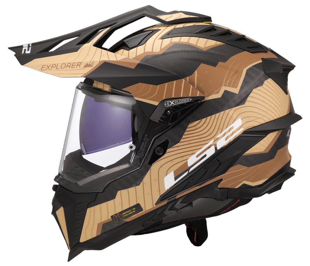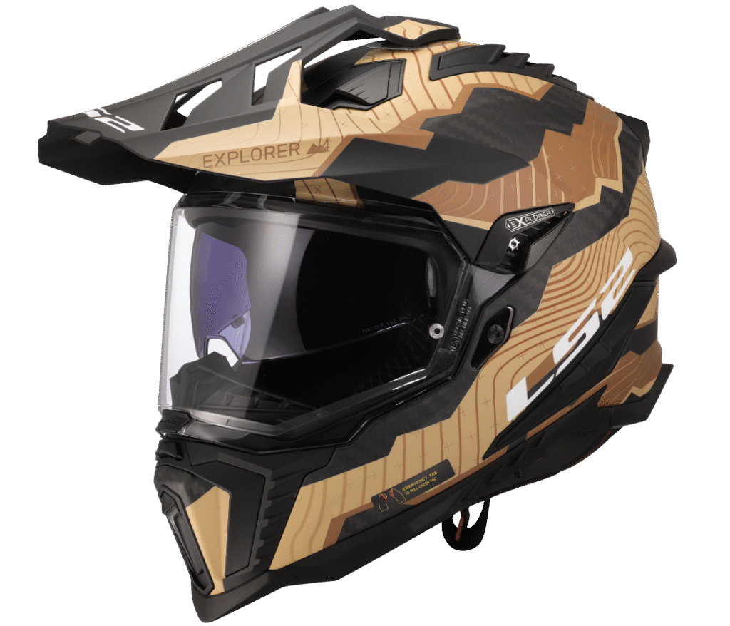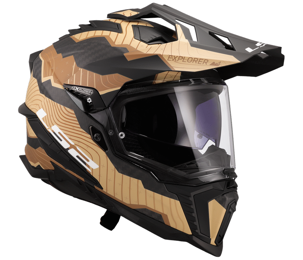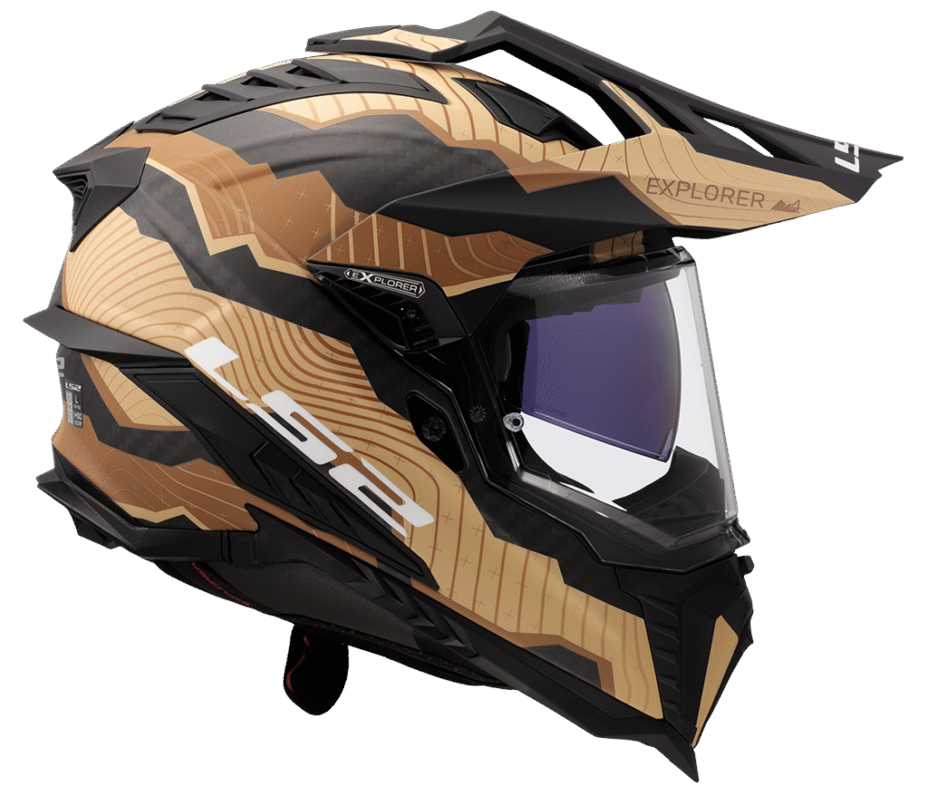 Špičková karbonová enduro helma LS2, integrovaná sluneční clona, čiré opticky přesné Anti-UV plexi s úpravou proti poškrábání, účinné větrání, komfortní antibakteriální antialergický kompletně vyjímatelný a pratelný interiér, rychlé vyjímání lícnic, zapínání dvojitými D-kroužky, 1380g