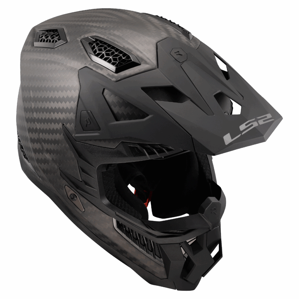 Vrchol nabídky motokrosových a off-roadových helem LS2, karbonová skořepina ze 6K karbonu nebo 9K karbonu, sluneční kšilt posuvně nastavitelný a snadno odnímatelný pomocí tlačítek, přepracovaný interiér, picí nástavec, zapínání dvojitými D-kroužky, nová homologace ECE 22.06, hmotnost pouze 1200g