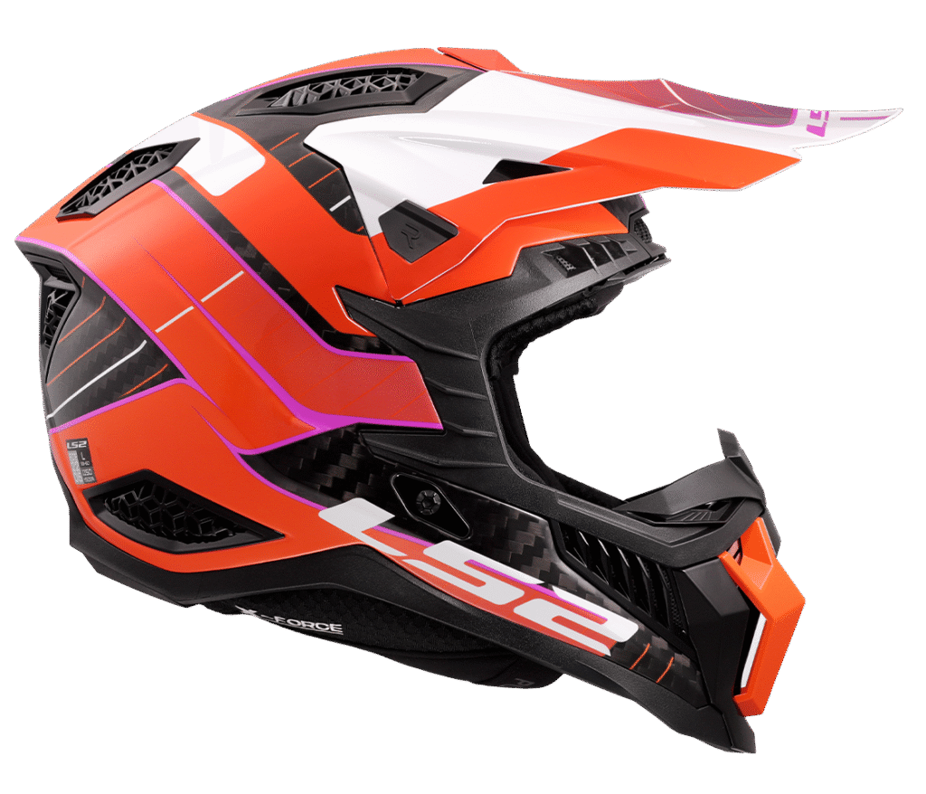 Vrchol nabídky motokrosových a off-roadových helem LS2, karbonová skořepina ze 6K karbonu nebo 9K karbonu, sluneční štítek posuvně nastavitelný a snadno odnímatelný pomocí tlačítek, přepracovaný interiér, picí nástavec, zapínání dvojitými D-kroužky, nová homologace ECE 22.06, hmotnost pouze 1300g