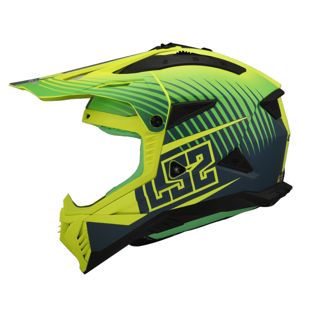 Motokrosová helma, bezpečná skořepina z patentovaného materiálu KPA, nastavitelný a odnímatelný kšilt, komfortní antibakteriální antialergický vyjímatelný a pratelný interiér, zapínání dvojitými D-kroužky, hmotnost 1450g