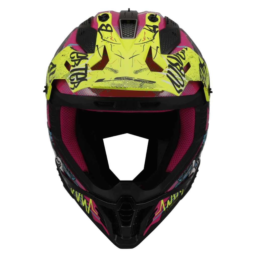 Motokrosová helma, bezpečná skořepina z patentovaného materiálu KPA, nastavitelný a odnímatelný kšilt, komfortní antibakteriální antialergický vyjímatelný a pratelný interiér, zapínání dvojitými D-kroužky, hmotnost 1450g