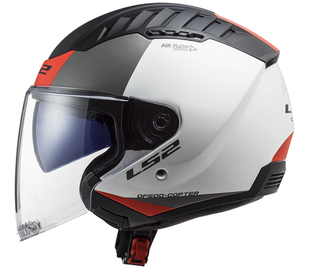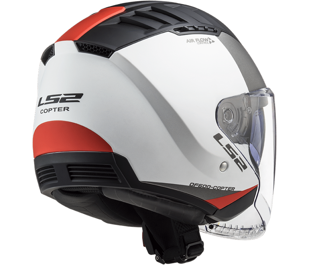 Otevřená helma s vysouvací sluneční clonou pro jízdy na krátké vzdálenosti, do města a do práce, KPA skořepina, čiré 3D plexi, vysouvací sluneční clona, vyjímatelný a pratelný interiér