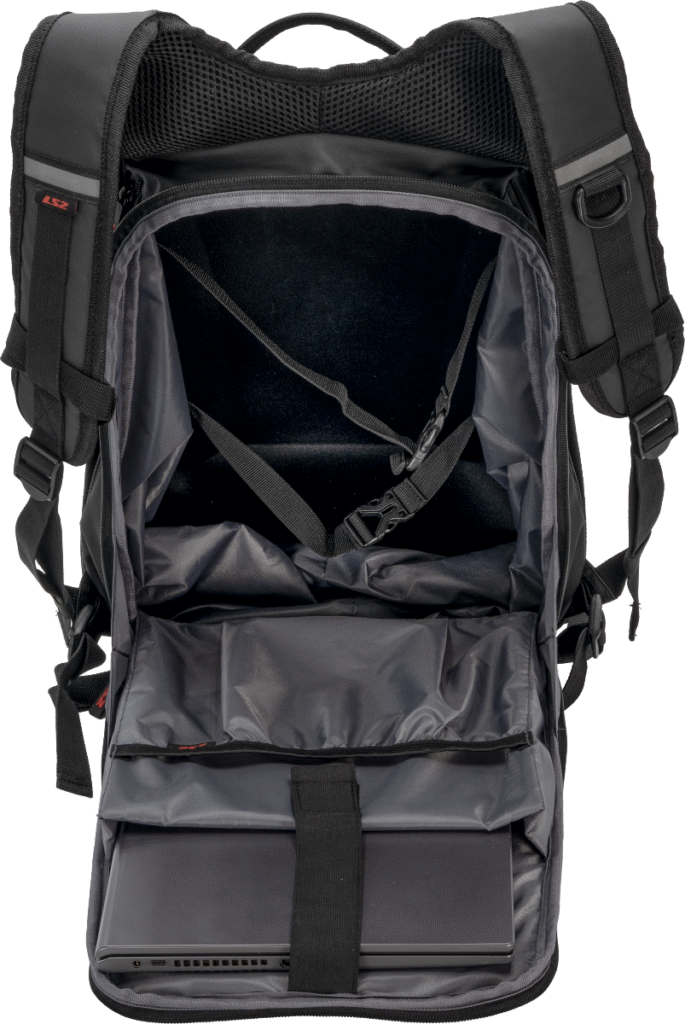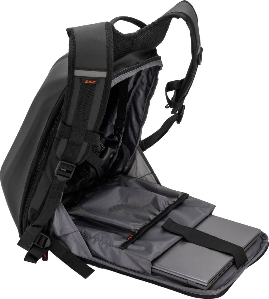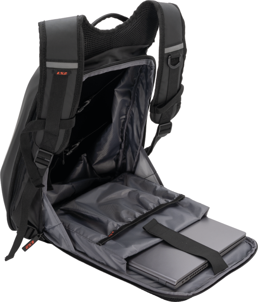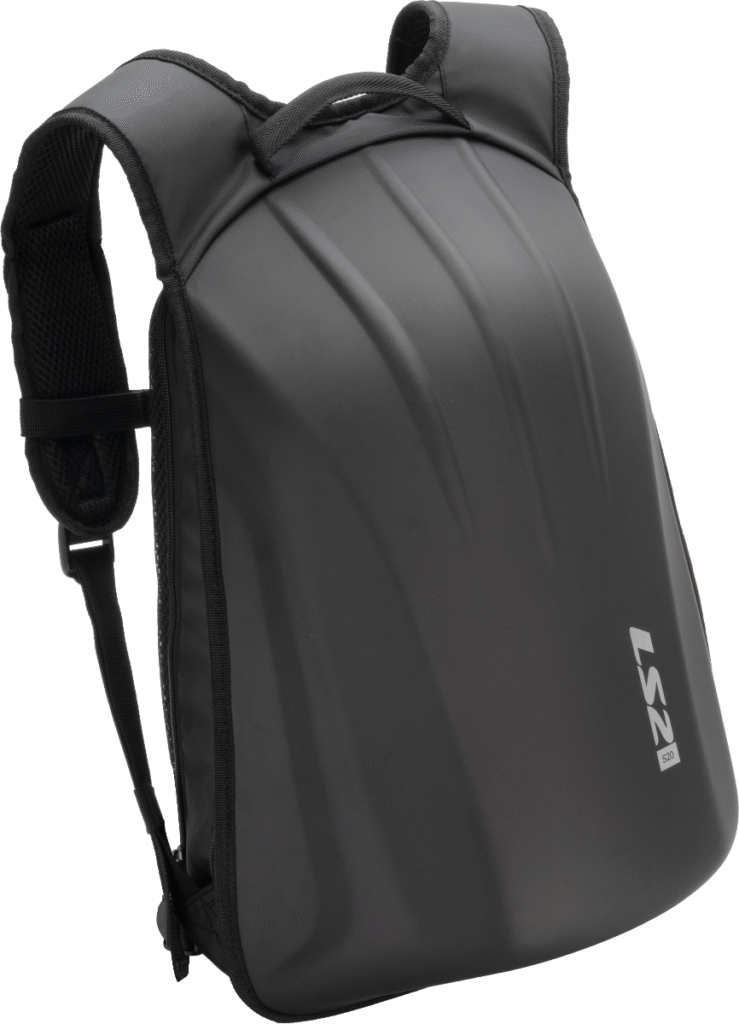Aerodynamický batoh s pevnou skořepinou a objemem 25 litrů. Disponuje rozšiřitelnou kapsou pro uložení integrální helmy, polstrovanou kapsou na 17″ notebook a voděodolným povrchem. Ideální volba pro bezpečnou jízdu v dešti i při vysokých rychlostech.