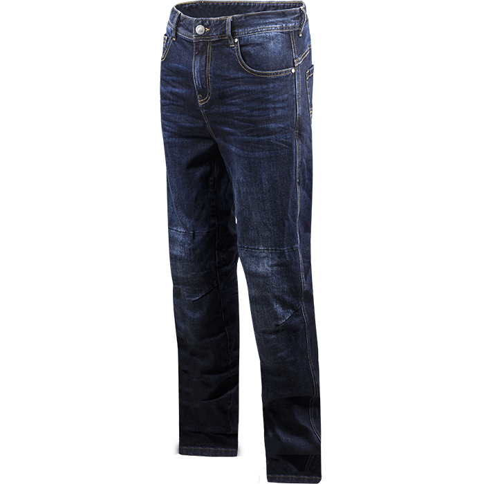 Pánské džíny na motorku s vyjímatelnými chrániči kolen, strečová konstrukce, rovný střih, lehce zúžené nohavice, Kevlarová výztuha na exponovaných místech kolen a zadní části, výborná prodyšnost, bezpečnostní švy, zesílení aramidovým vláknem, kapsy pro chrániče kyčlí, CE-certifikace