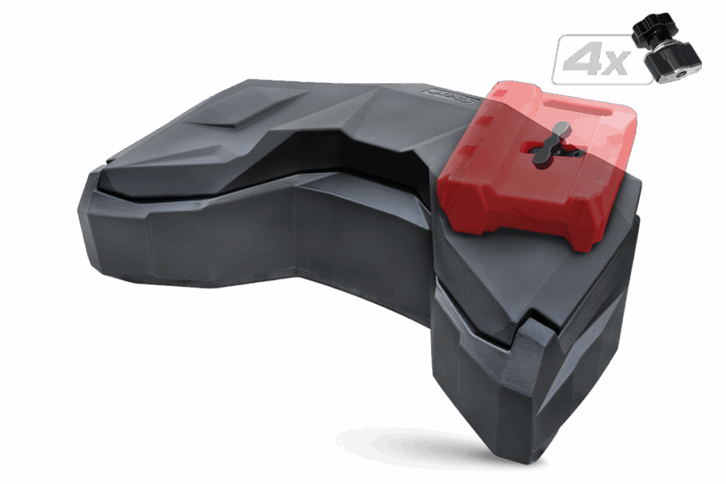 Uzamykatelný zadní box na čtyřkolku, objem 105 litrů, těsnění proti vnikání vody, dvě zadní odrazky, zamykání na dvě kovové přezky, rychloupínací sada součástí balení, rozměry 106 x 62 x 35 cm (D x Š x V)