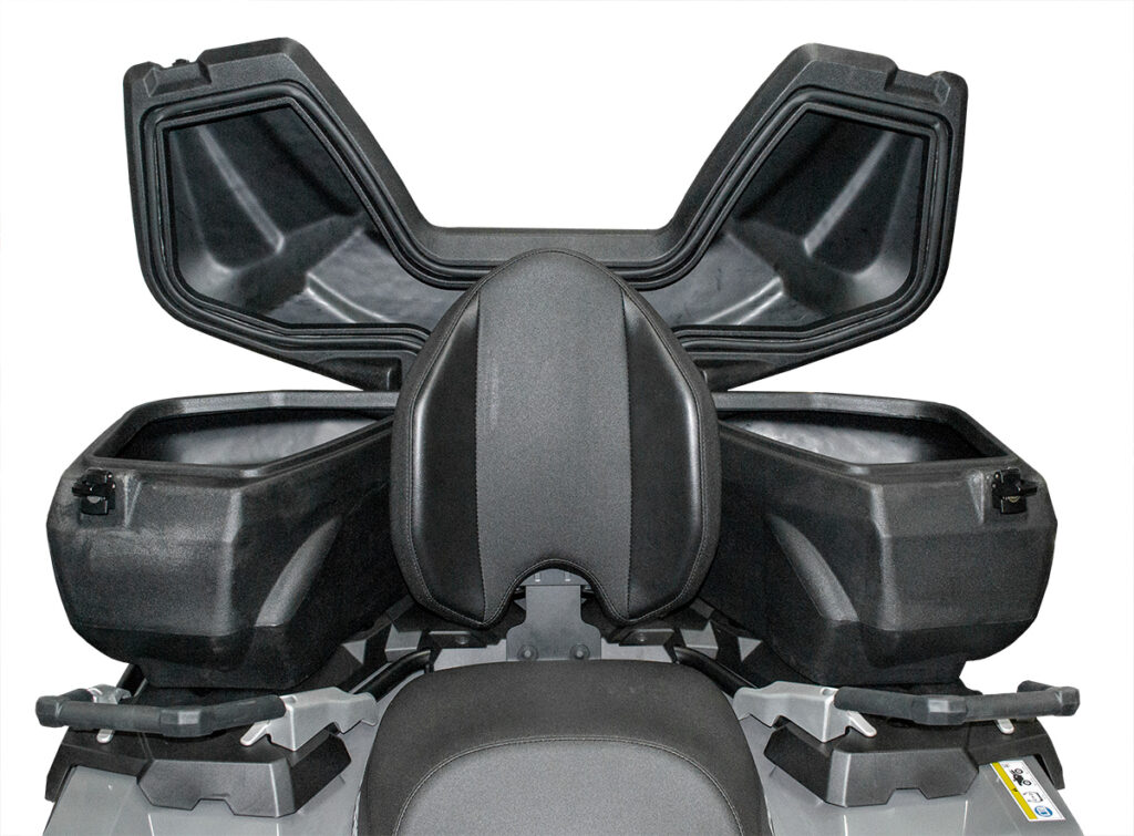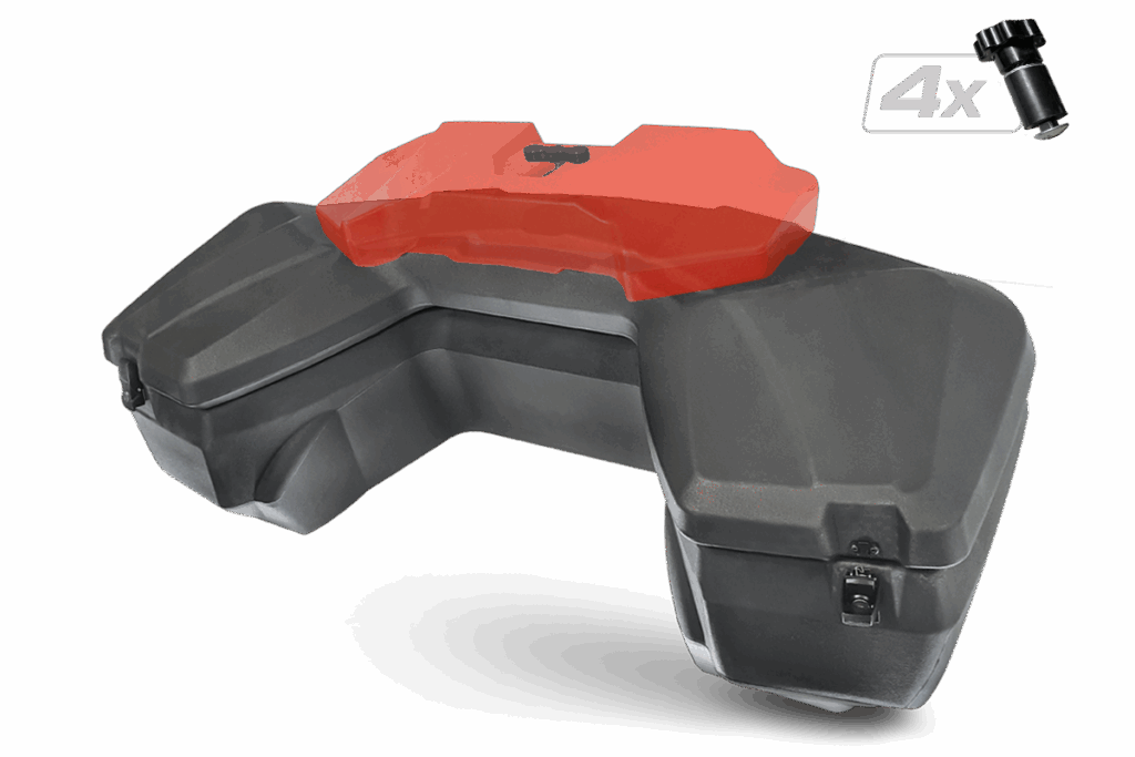 Velký uzamykatelný zadní box na čtyřkolku, objem 115 litrů, zamykání na dvě uzamykatelné přezky, těsnění proti vnikání vody, dvě zadní odrazky, černý, rychloupínací sada součástí balení, rozměry 120 x 58 x 36 cm (D x Š x V), bez kanystru vyobrazeného na fotografii