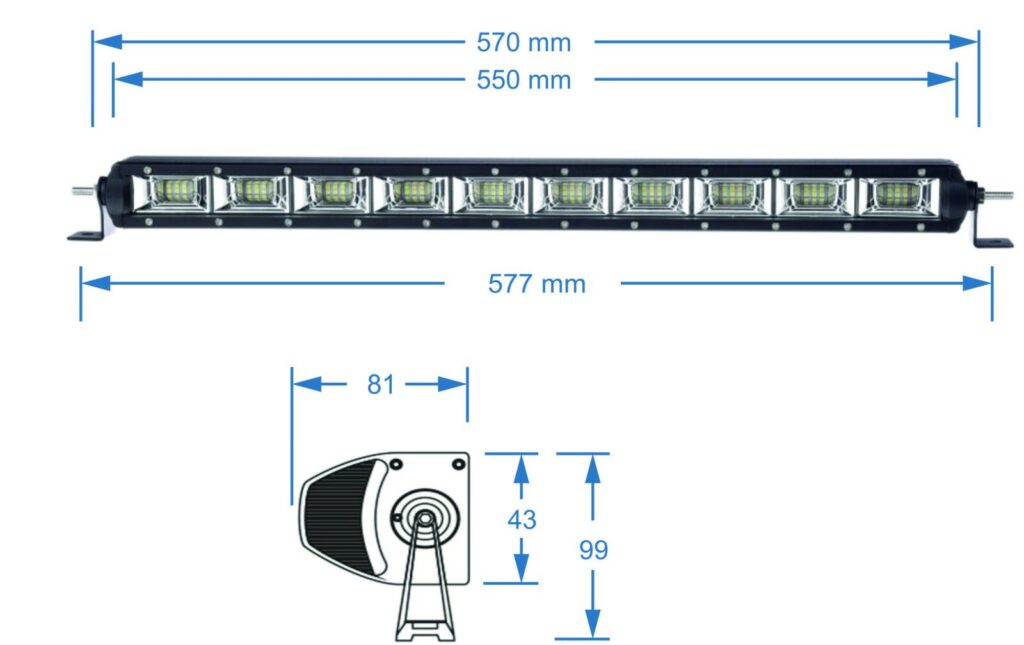 Vysoce svítivá 100W LED rampa / LED světlo pro čtyřkolky, UTV, Side by Side, offroady, SUV a pracovní stroje, 60x LED modul ETI, barva světla 6000K, 4400 lm, napětí 9-32V, příkon 100W, krytí IP67, životnost 30.000h, délka 55cm, barva černán