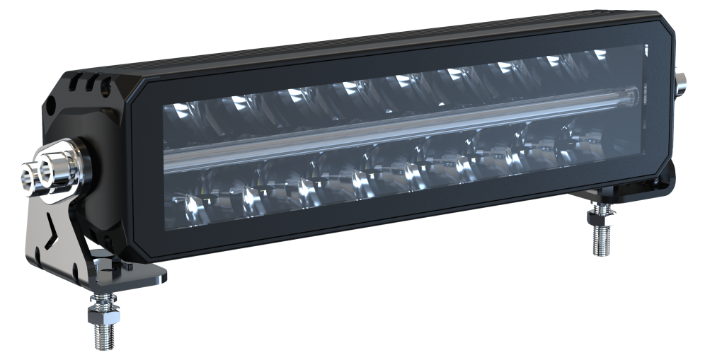 Vysoce svítivá LED rampa nové generace, denní svícení bílé / oranžové, 18 LED modulů CSHP, 60W, 9-32V, 4800lm, krytí IP67, délka 33,2cm, černý stealth design, EU homologace
