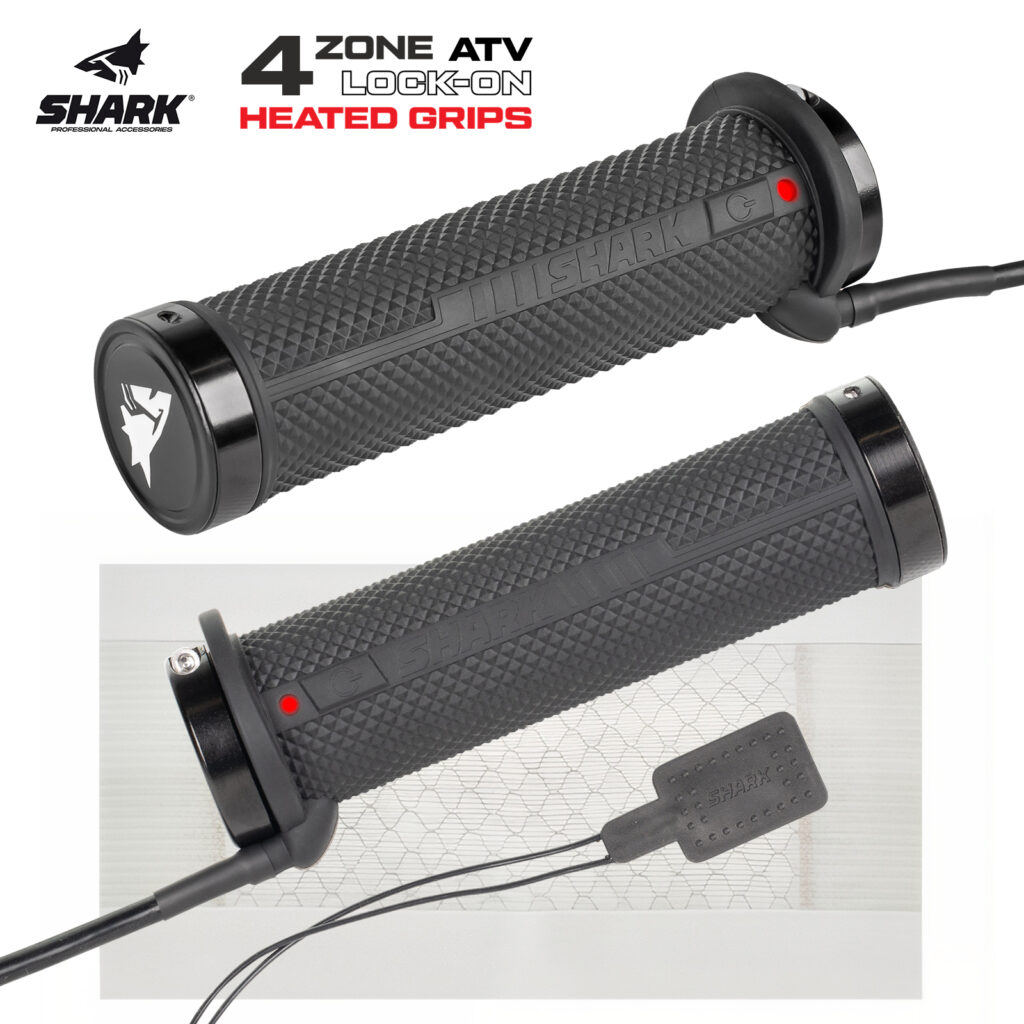 Vyhřívané rukojeti Lock-On s ovládáním integrovaným přímo v rukojeti + výhřev sedačky a palce, pro čtyřkolky a sněžné skútry, není třeba žádný ovladač na řídítka, možnost ovládání až čtyř vyhřívaných zařízení, nastavitelná intenzita výhřevů, paměť uložení nastavení, snadná a rychlá montáž bez nutnosti lepení, 12 V, LED kontrolky nastavení intenzity výhřevu, voděodolná konstrukce včetně konektorů, pro řídítka O 22 mm