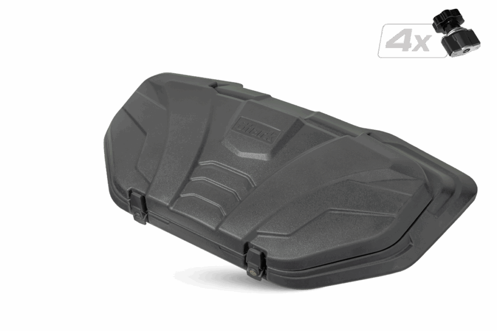 Uzamykatelný přední box na čtyřkolku o objemu 40 litrů, těsnění proti vnikání vody, zamykání na dvě kovové přezky, rychloupínací sada pro Segway AT6 součástí balení