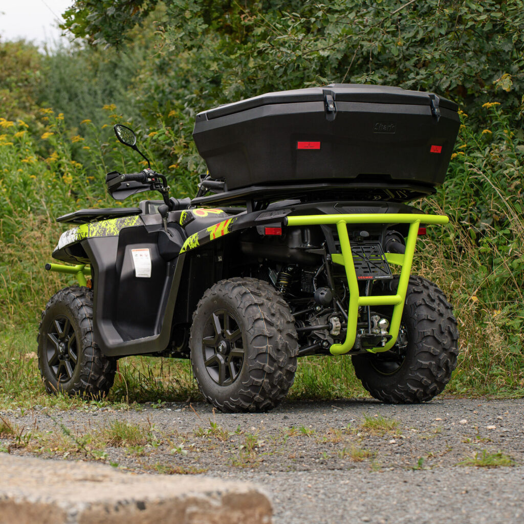 Masivní hliníkový zadní nárazník pro čtyřkolku SEGWAY AT5, z tvrzeného hliníku třídy 6060-T5, O40x2.5mm, zelená povrchová úprava, snadná montáž